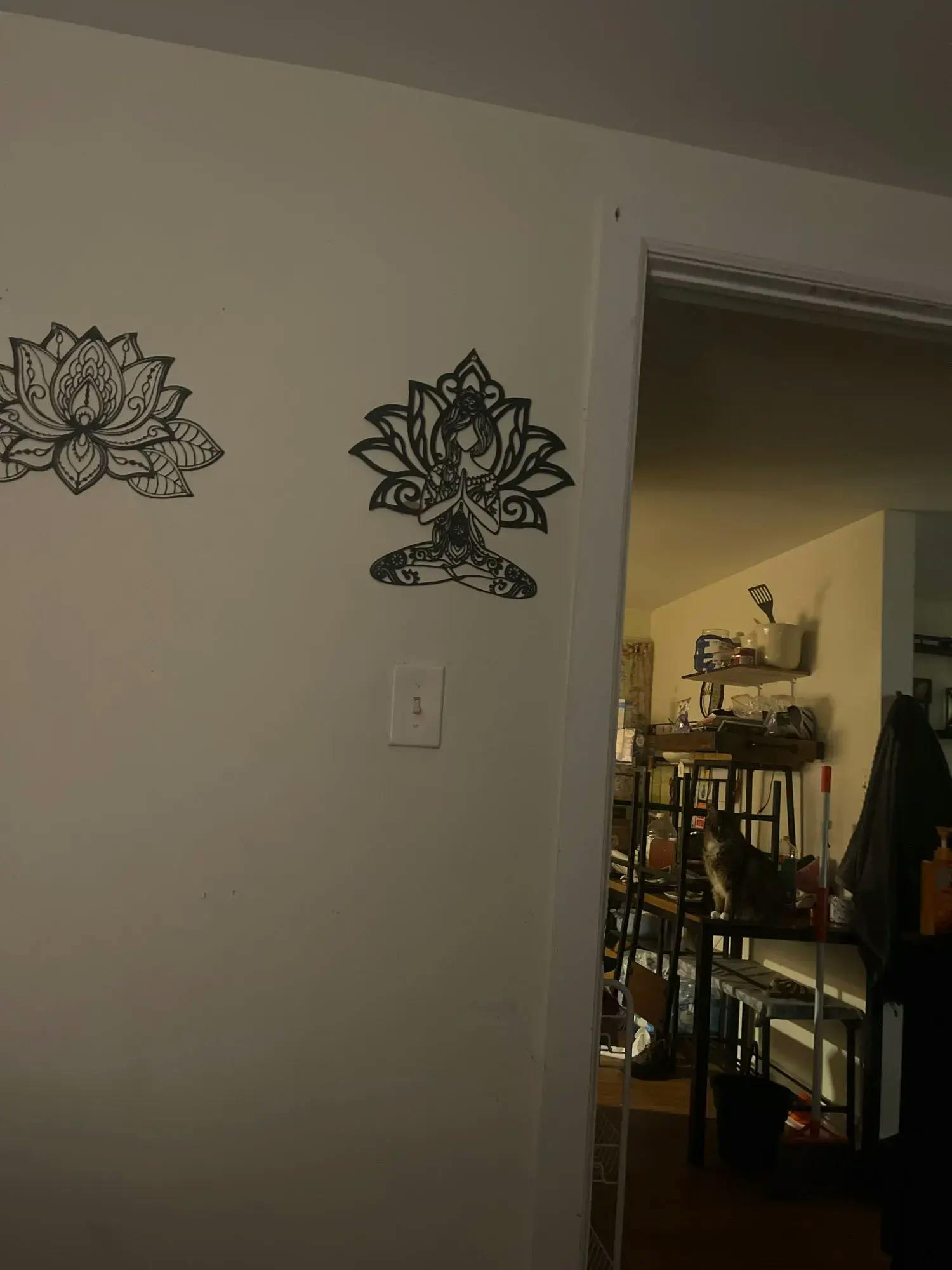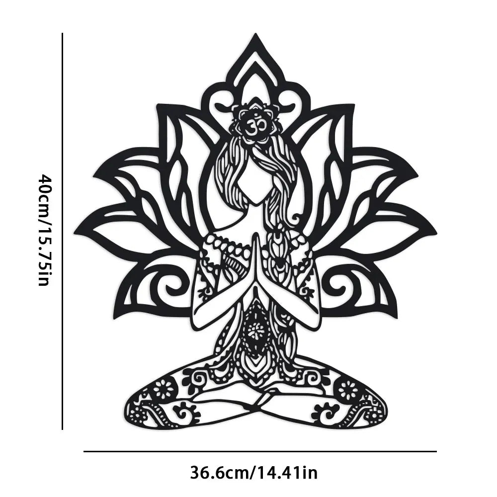 Crafted in a clean black metal finish, this lotus meditation wall art blends strength and softness. The flowing lines, detailed patterns, and open design keep it light on the wall while still making a statement. The lotus represents growth and balance, while the meditating figure adds a deeply personal, grounding presence to your space.