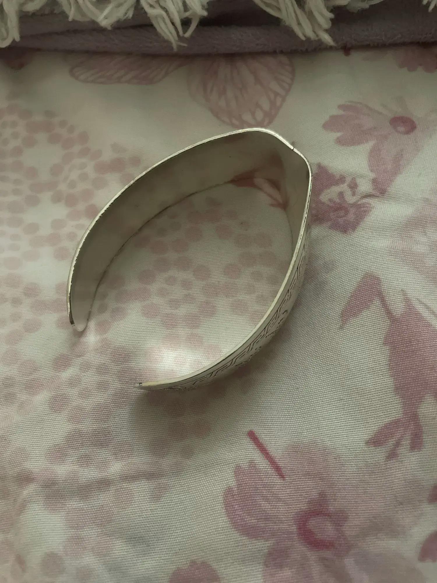 I love the design on the bracelet so cute!! But unfortunately it fits funny on me i was expecting a perfect circle but this weird shape instead.