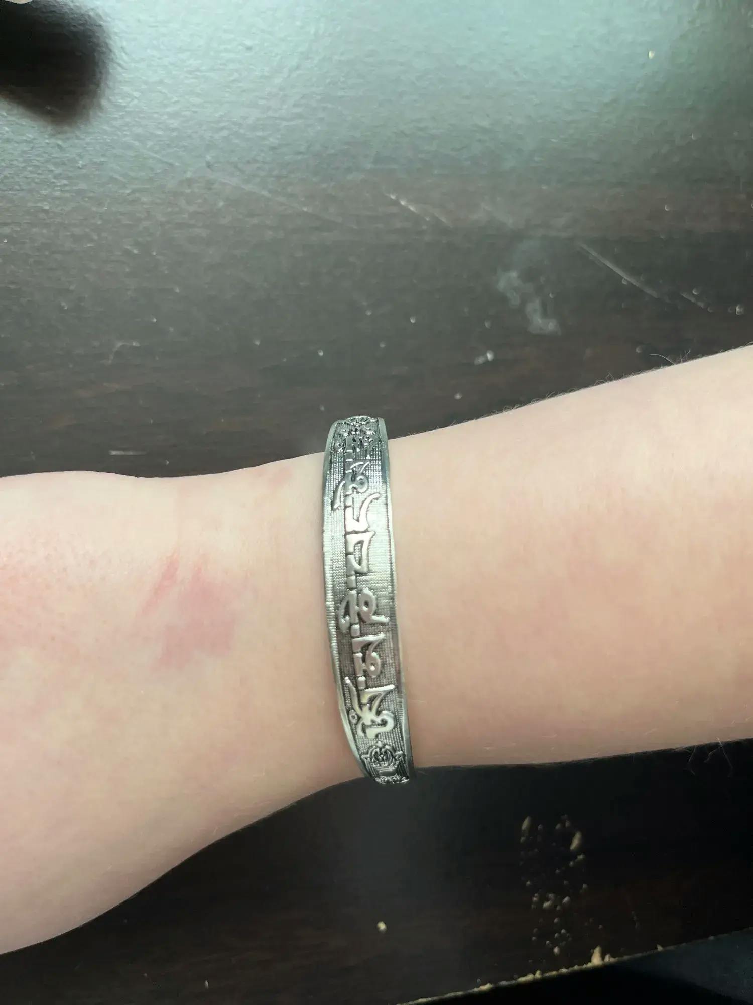 Each bangle has a narrow, structured shape that sits comfortably on the wrist and stacks cleanly. The silver-tone finish has a soft, lived-in look, while the etched motifs—florals, waves, and traditional symbols—add depth that reveals itself slowly. These thin silver bangles feel subtle on their own and beautifully collected when worn together.