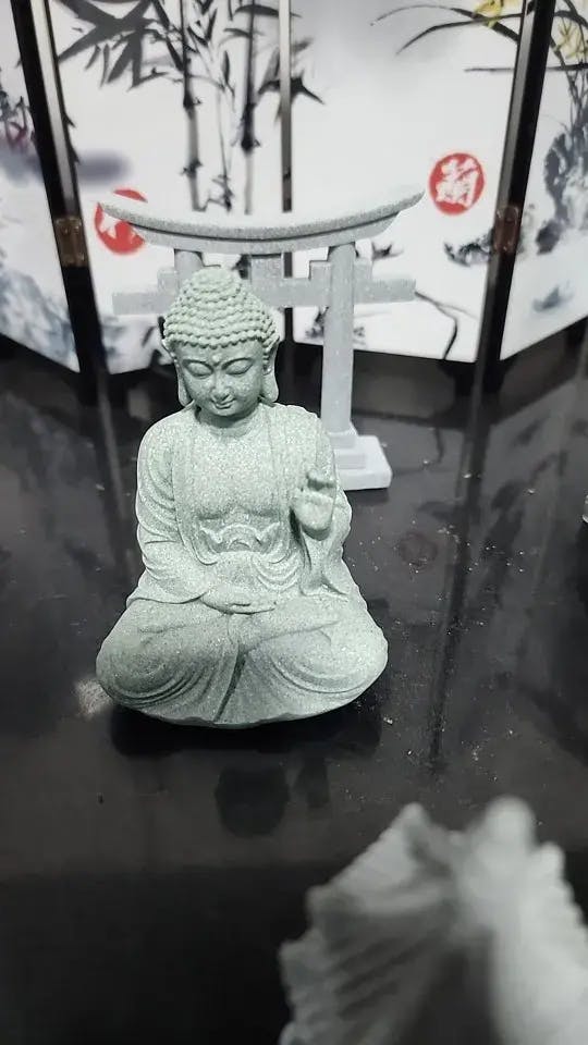 Perfect for shelves, desks, or meditation corners, this statue works just as well as a focal point as it does as a subtle companion to your daily rituals. It adds depth without demanding attention, offering a steady reminder of stillness, reflection, and intentional living.